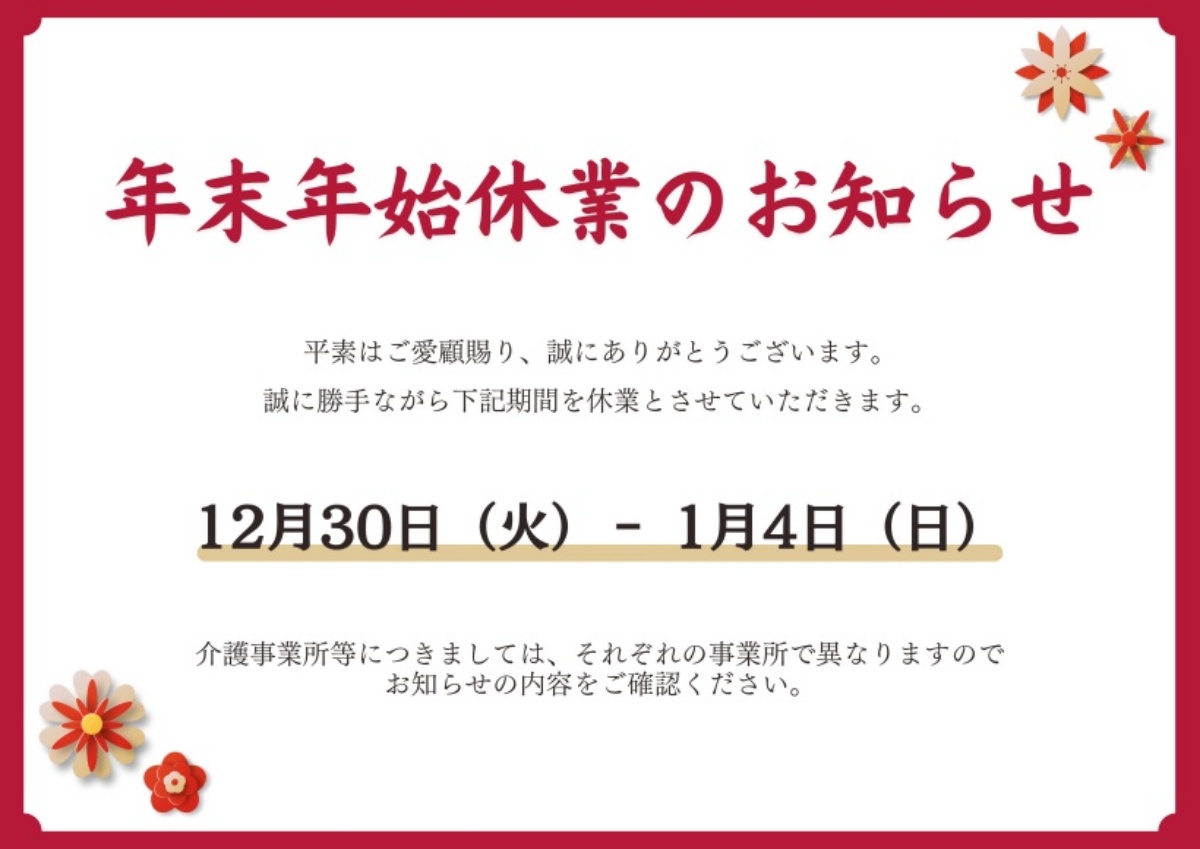 年末年始休業のお知らせ